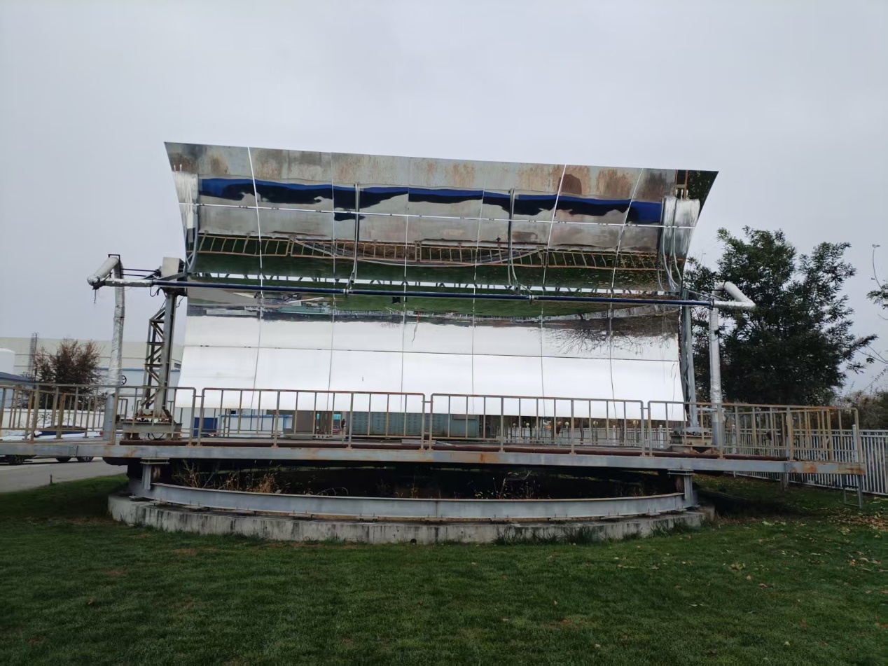 实验电站的气象站、抛物面槽式太阳能集热器热性能测试平台和太阳能集热器稳态性能测试平台,三个中每个平台都有丰富的技术细节和设计知识,比如抛物面槽式太阳能集热器热性能测试平台,涉及的知识面多,多看多思考,都是学问,如测试标准和测试方法,RP3单元镜,内镜和外镜的差别,欧洲槽的结构设计,真空集热管的组成,导热油的工作温度范围,旋转平台的双轴跟踪方式的差异以及保持入射角不变时的方位轴和俯仰轴跟踪角度计算公式,入射角修正因子,旋转接头,流量计,阀门,油泵,压力变送器,测温热电偶,等等。一个测试平台是完整实验系统,涉及机械、光学、传热、流体力学、仪器仪表、自动控制,也涉及导热油物性曲线,温度、流量和压力的测量,槽式聚光镜和真空集热管组成的槽式太阳能集热器整体,其测试精度和可靠性关系到太阳能集热器性能认定和电站性能的评估,小系统大意义。槽式太阳能集热器热性能测试平台,蕴含系统的知识体系,非常适合太阳能热发电技术教学。眼过千遍,不如手过一遍,同学们现场实验操作,体验更深刻,理解更深刻。既有课堂教学,又有电站实习,提高了专业课教学效果。